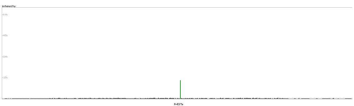 At the top of the view, the position of the antigen (identified by the corresponding HPA identifier) is shown as a green bar. A yellow triangle on the bar indicates a <100% sequence identity to the protein target.