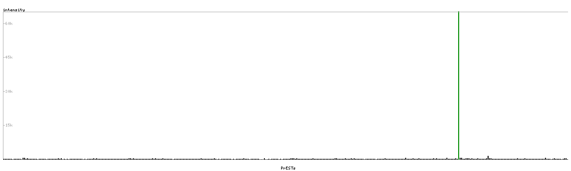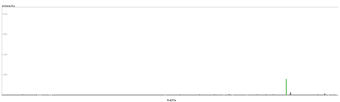 At the top of the view, the position of the antigen (identified by the corresponding HPA identifier) is shown as a green bar. A yellow triangle on the bar indicates a <100% sequence identity to the protein target.