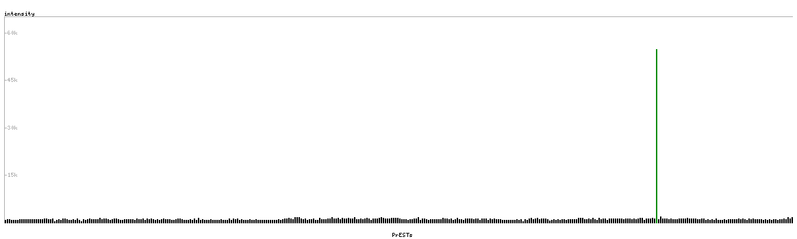 At the top of the view, the position of the antigen (identified by the corresponding HPA identifier) is shown as a green bar. A yellow triangle on the bar indicates a <100% sequence identity to the protein target.