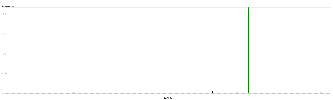 At the top of the view, the position of the antigen (identified by the corresponding HPA identifier) is shown as a green bar. A yellow triangle on the bar indicates a <100% sequence identity to the protein target.