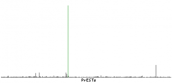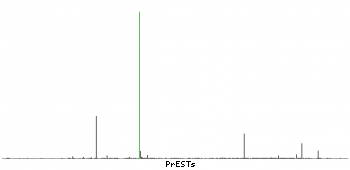 At the top of the view, the position of the antigen (identified by the corresponding HPA identifier) is shown as a green bar. A yellow triangle on the bar indicates a <100% sequence identity to the protein target.