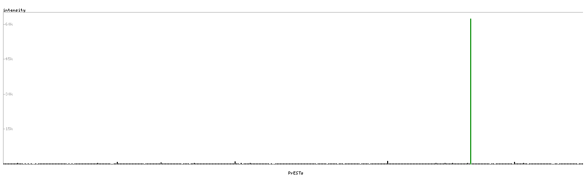 At the top of the view, the position of the antigen (identified by the corresponding HPA identifier) is shown as a green bar. A yellow triangle on the bar indicates a <100% sequence identity to the protein target.