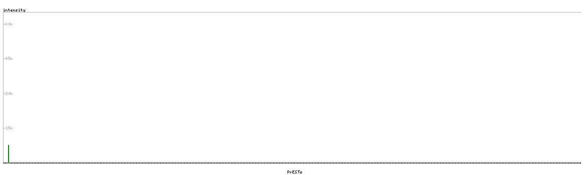 At the top of the view, the position of the antigen (identified by the corresponding HPA identifier) is shown as a green bar. A yellow triangle on the bar indicates a <100% sequence identity to the protein target.