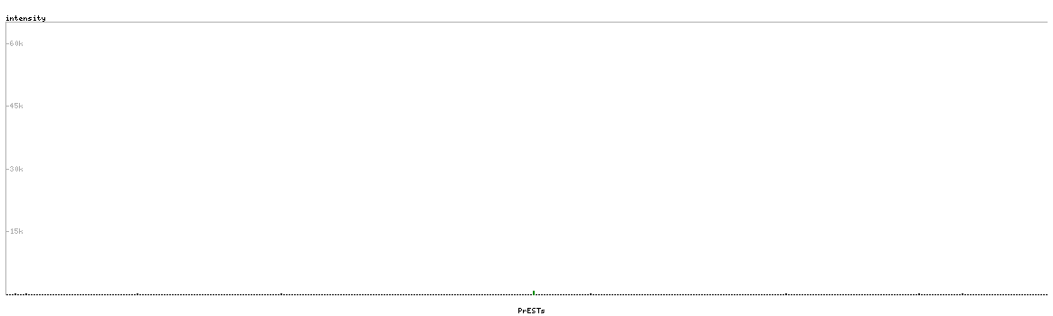 At the top of the view, the position of the antigen (identified by the corresponding HPA identifier) is shown as a green bar. A yellow triangle on the bar indicates a <100% sequence identity to the protein target.