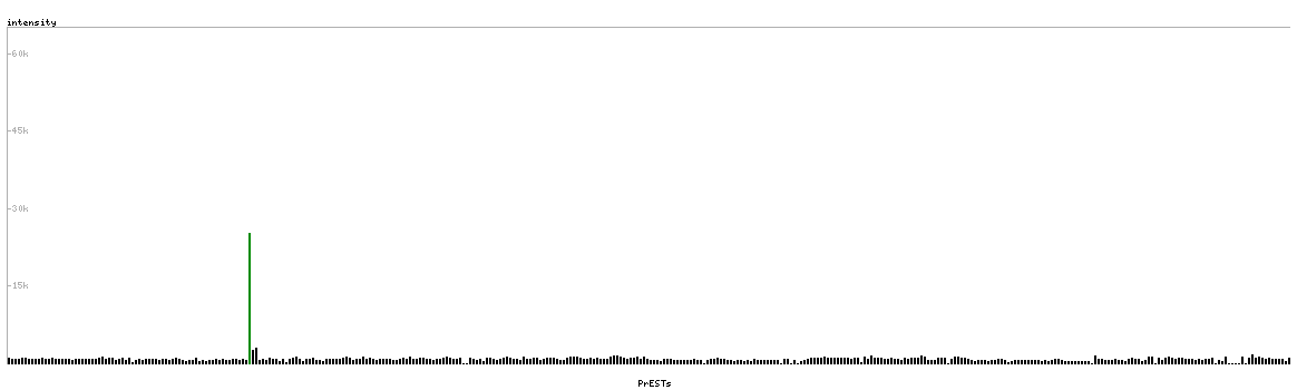 At the top of the view, the position of the antigen (identified by the corresponding HPA identifier) is shown as a green bar. A yellow triangle on the bar indicates a <100% sequence identity to the protein target.