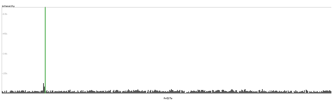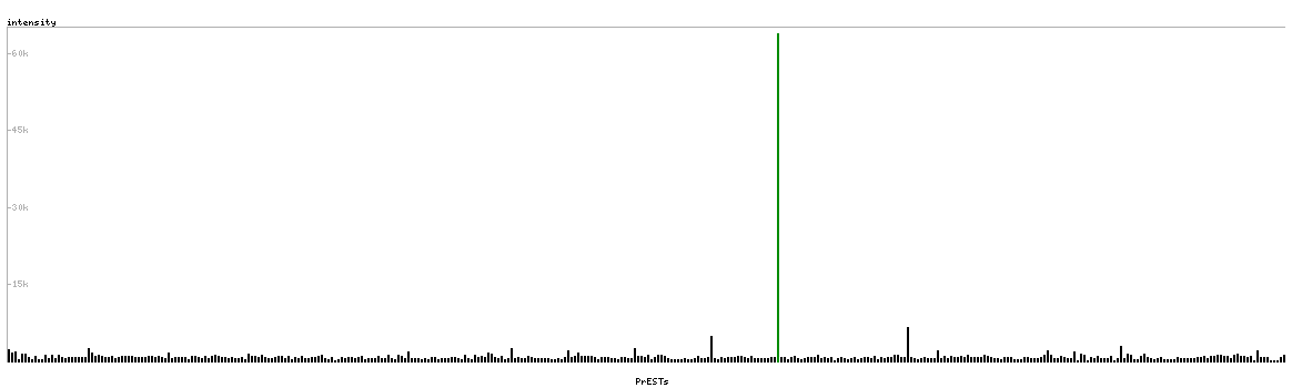 At the top of the view, the position of the antigen (identified by the corresponding HPA identifier) is shown as a green bar. A yellow triangle on the bar indicates a <100% sequence identity to the protein target.