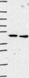 Antibody band pattern is confirmed by antibody HPA063636. Analysis performed using a standard panel of samples.