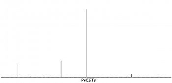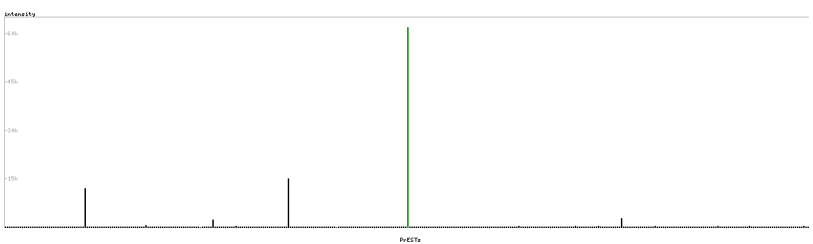 At the top of the view, the position of the antigen (identified by the corresponding HPA identifier) is shown as a green bar. A yellow triangle on the bar indicates a <100% sequence identity to the protein target.