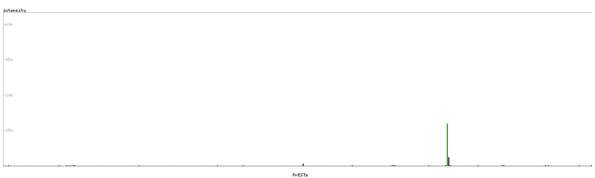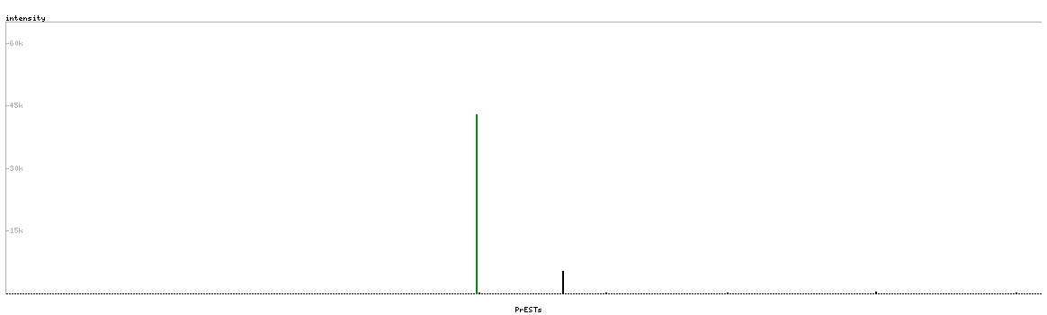 At the top of the view, the position of the antigen (identified by the corresponding HPA identifier) is shown as a green bar. A yellow triangle on the bar indicates a <100% sequence identity to the protein target.
