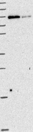 Antibody band pattern is confirmed by antibody HPA051253. Analysis performed using a standard panel of samples.
