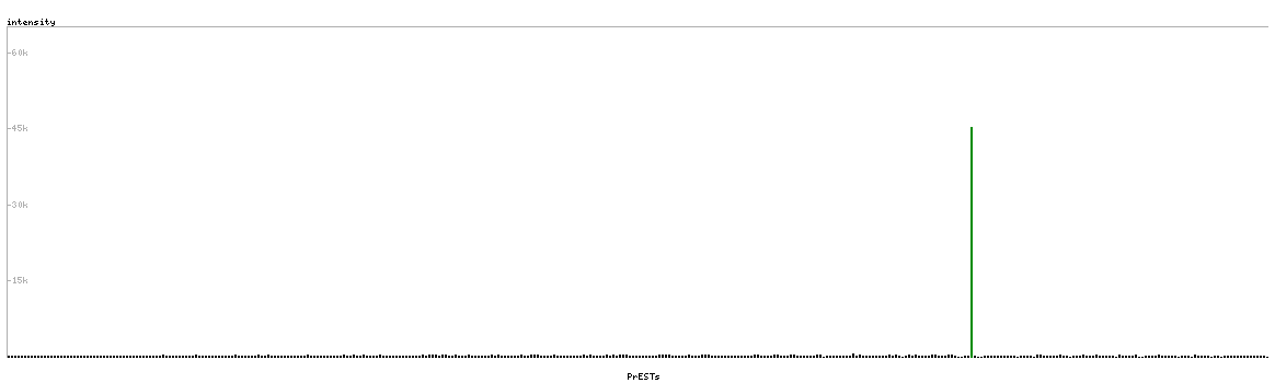 At the top of the view, the position of the antigen (identified by the corresponding HPA identifier) is shown as a green bar. A yellow triangle on the bar indicates a <100% sequence identity to the protein target.