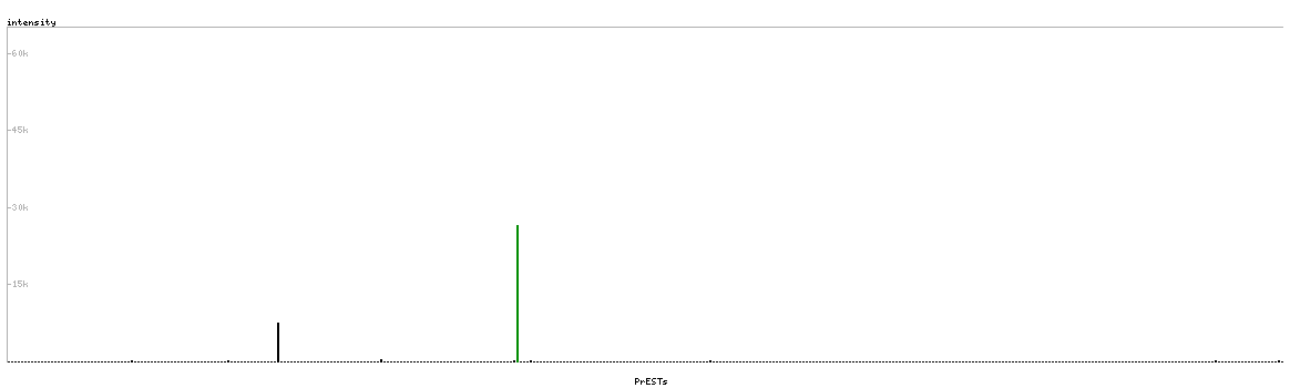 At the top of the view, the position of the antigen (identified by the corresponding HPA identifier) is shown as a green bar. A yellow triangle on the bar indicates a <100% sequence identity to the protein target.