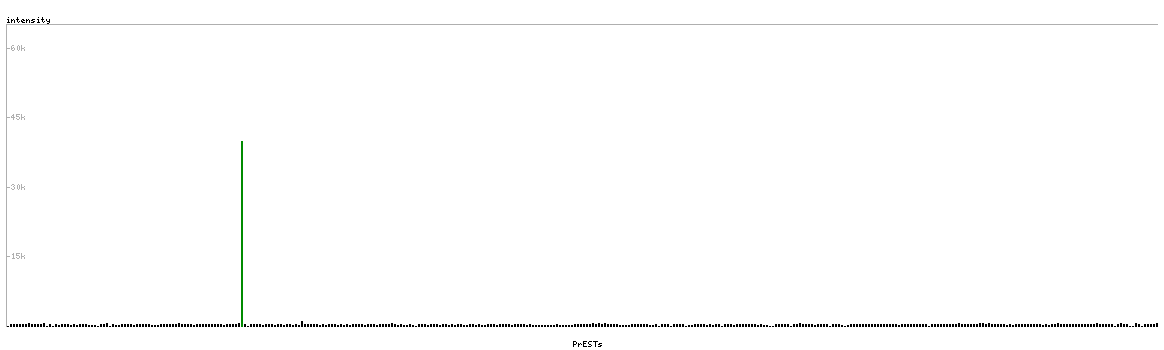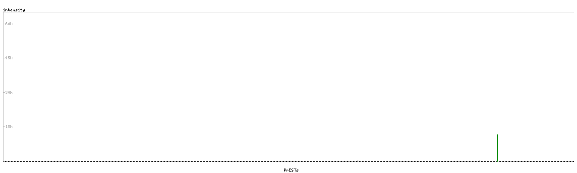 At the top of the view, the position of the antigen (identified by the corresponding HPA identifier) is shown as a green bar. A yellow triangle on the bar indicates a <100% sequence identity to the protein target.