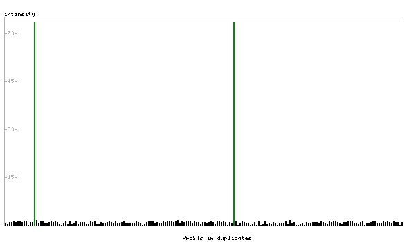 At the top of the view, the position of the antigen (identified by the corresponding HPA identifier) is shown as a green bar. A yellow triangle on the bar indicates a <100% sequence identity to the protein target.