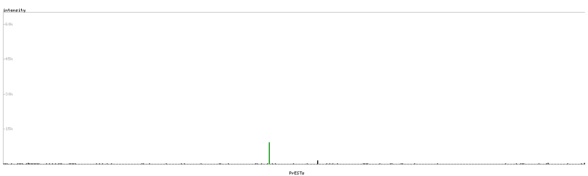 At the top of the view, the position of the antigen (identified by the corresponding HPA identifier) is shown as a green bar. A yellow triangle on the bar indicates a <100% sequence identity to the protein target.