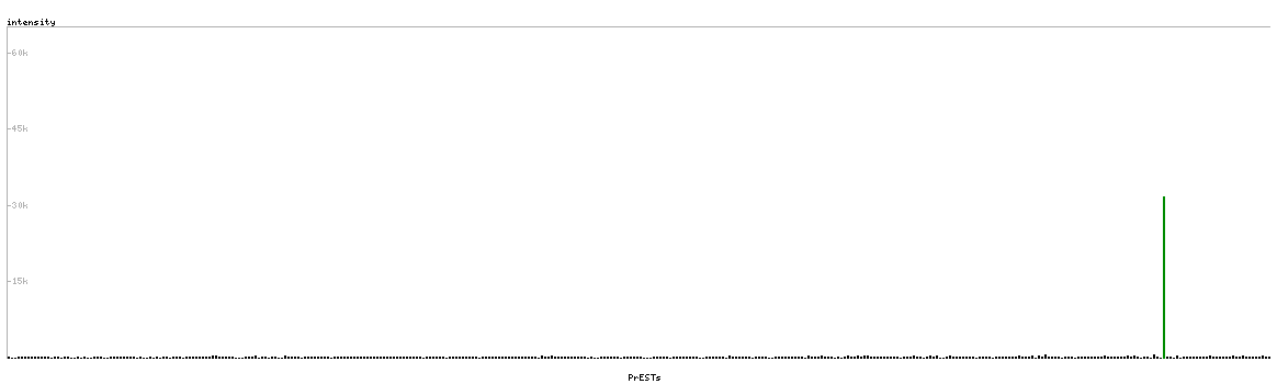 At the top of the view, the position of the antigen (identified by the corresponding HPA identifier) is shown as a green bar. A yellow triangle on the bar indicates a <100% sequence identity to the protein target.