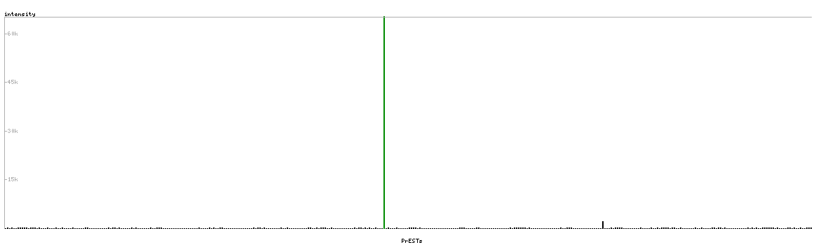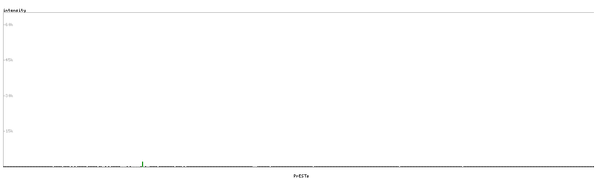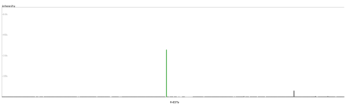 At the top of the view, the position of the antigen (identified by the corresponding HPA identifier) is shown as a green bar. A yellow triangle on the bar indicates a <100% sequence identity to the protein target.