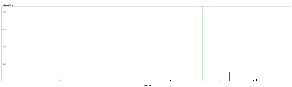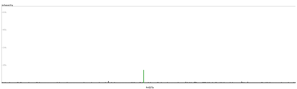 At the top of the view, the position of the antigen (identified by the corresponding HPA identifier) is shown as a green bar. A yellow triangle on the bar indicates a <100% sequence identity to the protein target.