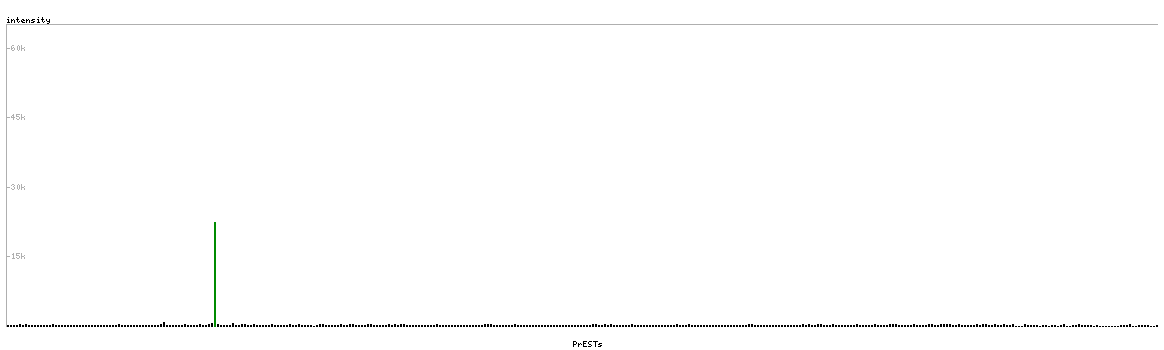 At the top of the view, the position of the antigen (identified by the corresponding HPA identifier) is shown as a green bar. A yellow triangle on the bar indicates a <100% sequence identity to the protein target.