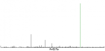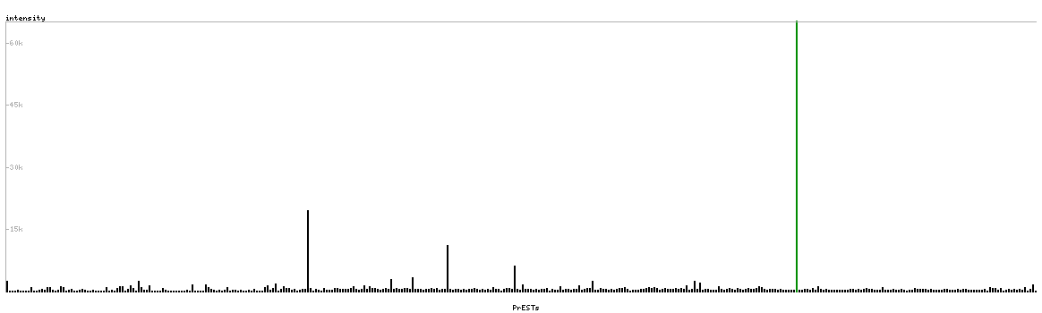 At the top of the view, the position of the antigen (identified by the corresponding HPA identifier) is shown as a green bar. A yellow triangle on the bar indicates a <100% sequence identity to the protein target.