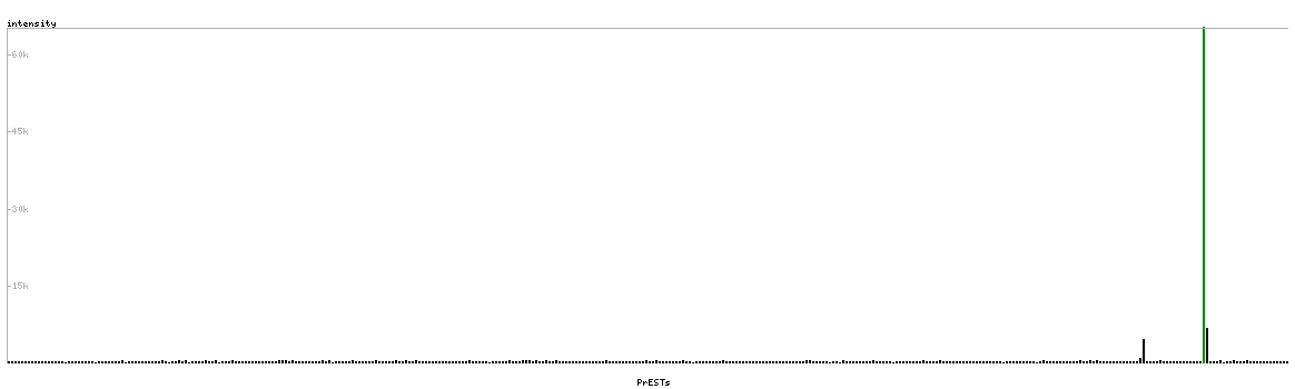 At the top of the view, the position of the antigen (identified by the corresponding HPA identifier) is shown as a green bar. A yellow triangle on the bar indicates a <100% sequence identity to the protein target.