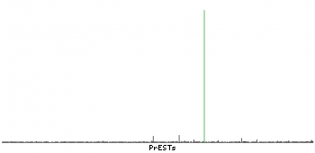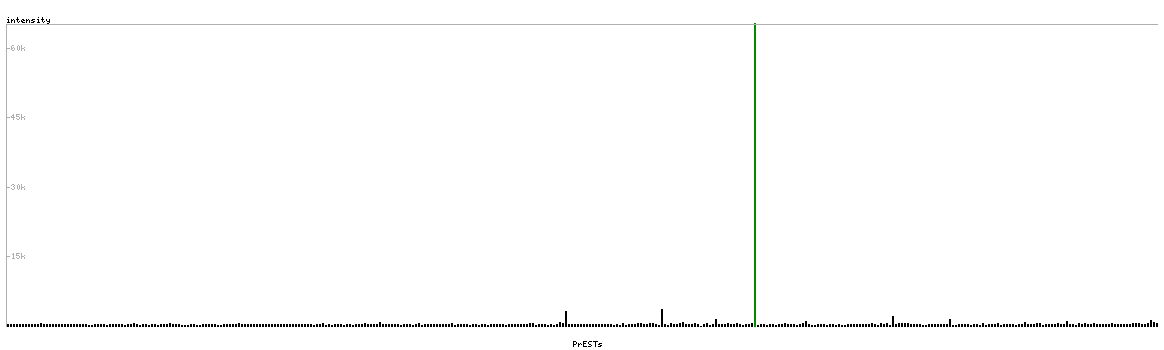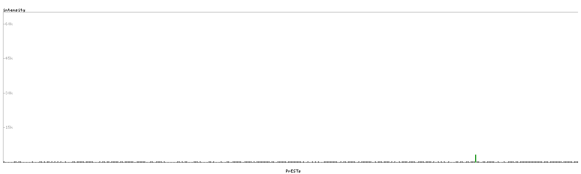 At the top of the view, the position of the antigen (identified by the corresponding HPA identifier) is shown as a green bar. A yellow triangle on the bar indicates a <100% sequence identity to the protein target.