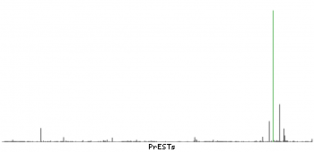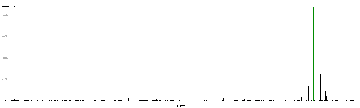 At the top of the view, the position of the antigen (identified by the corresponding HPA identifier) is shown as a green bar. A yellow triangle on the bar indicates a <100% sequence identity to the protein target.