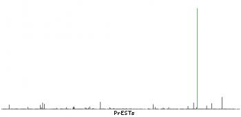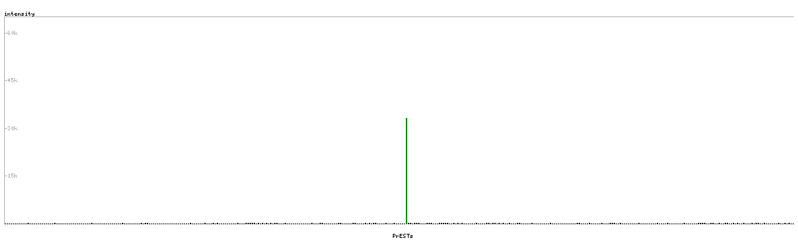 At the top of the view, the position of the antigen (identified by the corresponding HPA identifier) is shown as a green bar. A yellow triangle on the bar indicates a <100% sequence identity to the protein target.