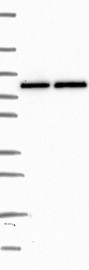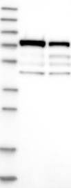 Antibody band pattern is confirmed by antibody HPA056496. Analysis performed using a standard panel of samples.