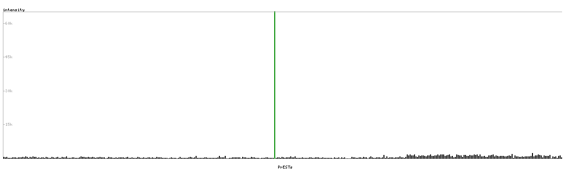At the top of the view, the position of the antigen (identified by the corresponding HPA identifier) is shown as a green bar. A yellow triangle on the bar indicates a <100% sequence identity to the protein target.