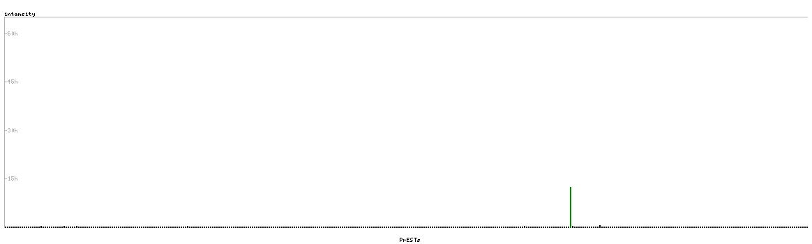 At the top of the view, the position of the antigen (identified by the corresponding HPA identifier) is shown as a green bar. A yellow triangle on the bar indicates a <100% sequence identity to the protein target.