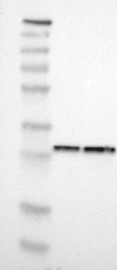 A Western blot analysis is performed on a panel of human tissues and cell lines to evaluate antibody specificity. For antibodies with unreliable result a revalidation using an over-expression lysate is performed.