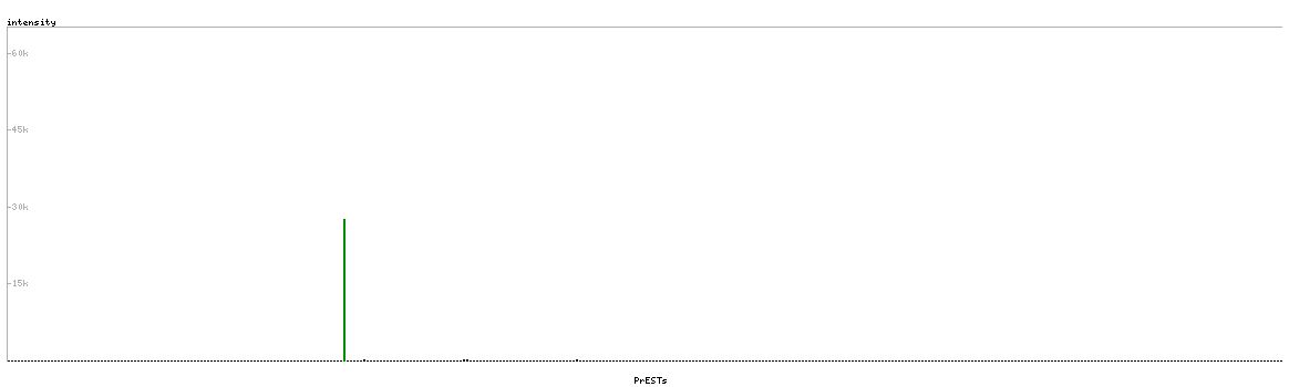 At the top of the view, the position of the antigen (identified by the corresponding HPA identifier) is shown as a green bar. A yellow triangle on the bar indicates a <100% sequence identity to the protein target.
