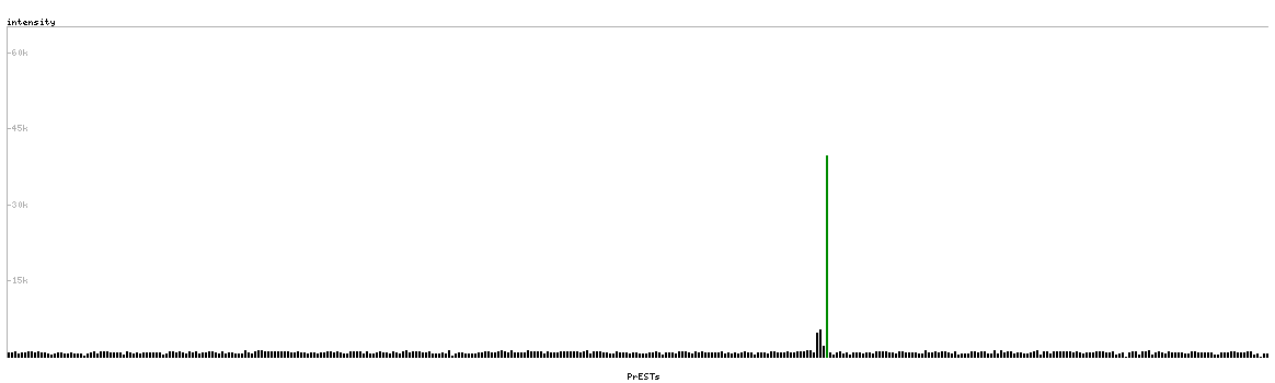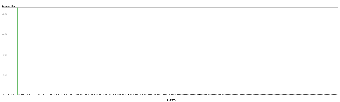 At the top of the view, the position of the antigen (identified by the corresponding HPA identifier) is shown as a green bar. A yellow triangle on the bar indicates a <100% sequence identity to the protein target.