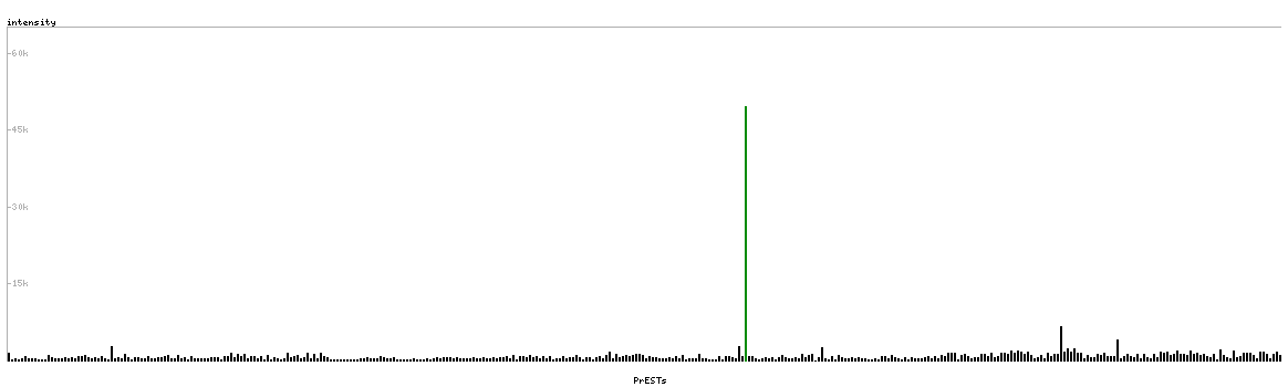 At the top of the view, the position of the antigen (identified by the corresponding HPA identifier) is shown as a green bar. A yellow triangle on the bar indicates a <100% sequence identity to the protein target.