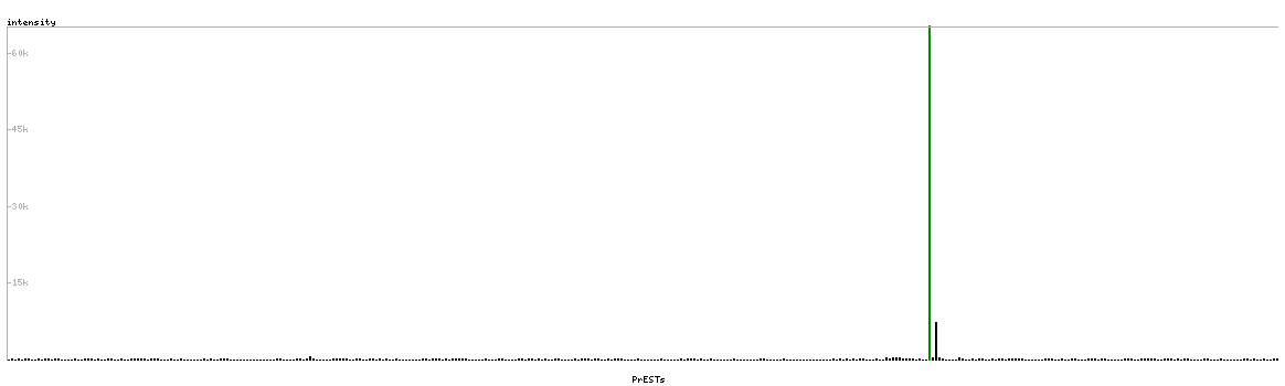 At the top of the view, the position of the antigen (identified by the corresponding HPA identifier) is shown as a green bar. A yellow triangle on the bar indicates a <100% sequence identity to the protein target.