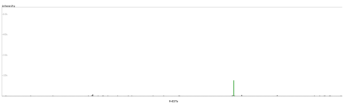At the top of the view, the position of the antigen (identified by the corresponding HPA identifier) is shown as a green bar. A yellow triangle on the bar indicates a <100% sequence identity to the protein target.