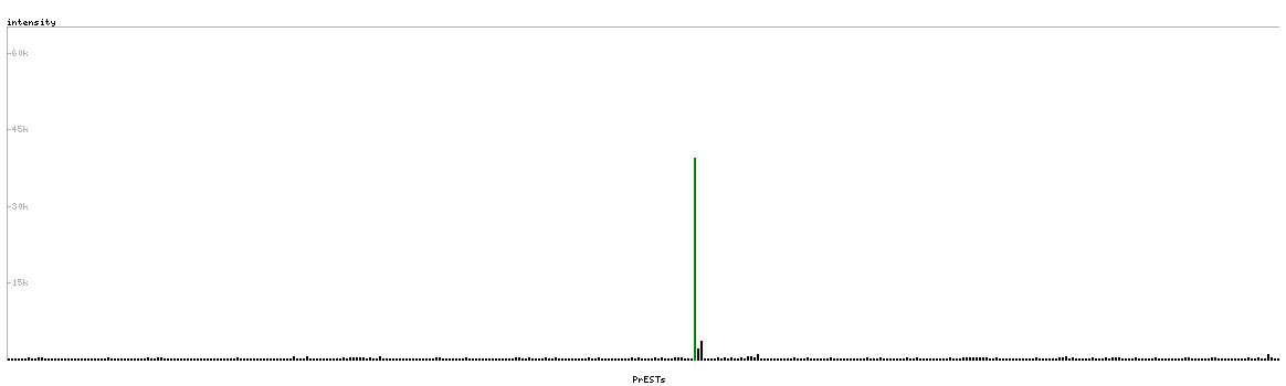 At the top of the view, the position of the antigen (identified by the corresponding HPA identifier) is shown as a green bar. A yellow triangle on the bar indicates a <100% sequence identity to the protein target.