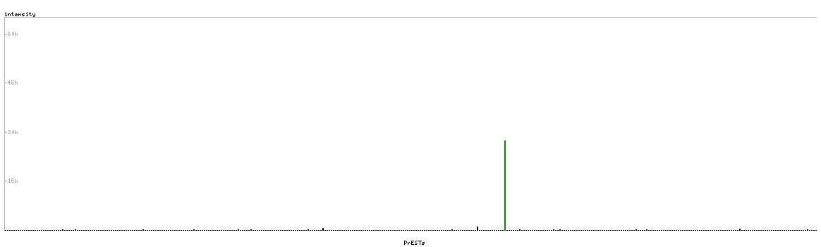 At the top of the view, the position of the antigen (identified by the corresponding HPA identifier) is shown as a green bar. A yellow triangle on the bar indicates a <100% sequence identity to the protein target.