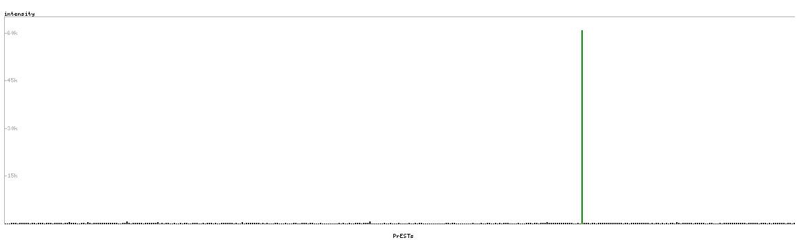 At the top of the view, the position of the antigen (identified by the corresponding HPA identifier) is shown as a green bar. A yellow triangle on the bar indicates a <100% sequence identity to the protein target.