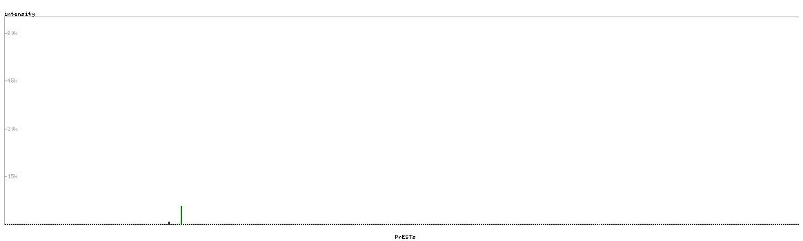 At the top of the view, the position of the antigen (identified by the corresponding HPA identifier) is shown as a green bar. A yellow triangle on the bar indicates a <100% sequence identity to the protein target.
