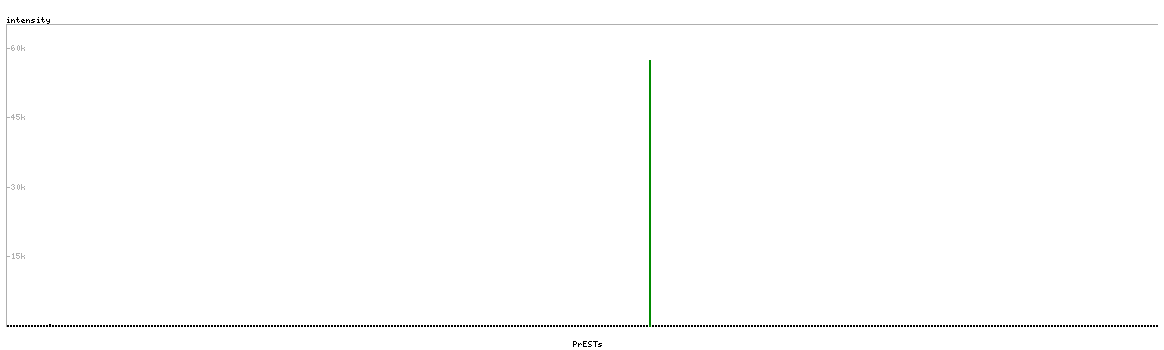 At the top of the view, the position of the antigen (identified by the corresponding HPA identifier) is shown as a green bar. A yellow triangle on the bar indicates a <100% sequence identity to the protein target.