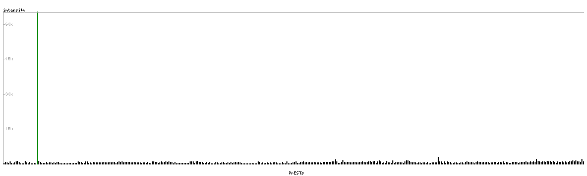 At the top of the view, the position of the antigen (identified by the corresponding HPA identifier) is shown as a green bar. A yellow triangle on the bar indicates a <100% sequence identity to the protein target.