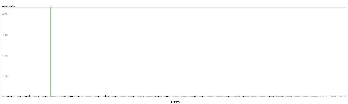 At the top of the view, the position of the antigen (identified by the corresponding HPA identifier) is shown as a green bar. A yellow triangle on the bar indicates a <100% sequence identity to the protein target.