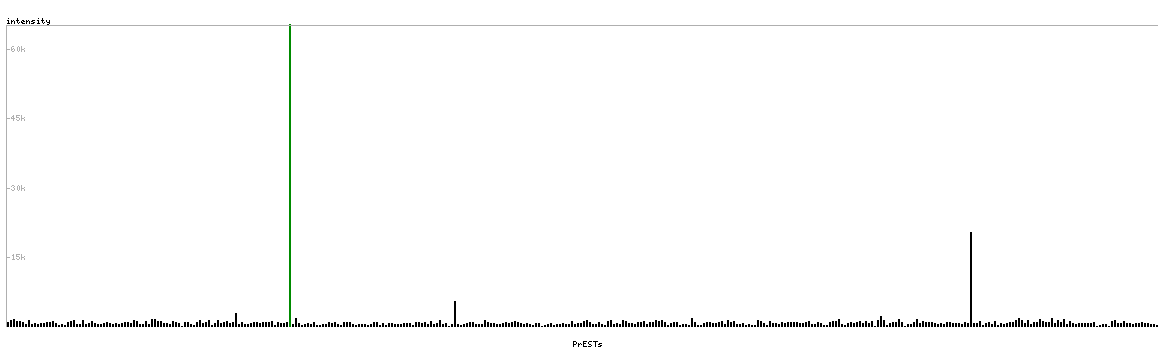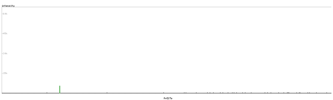 At the top of the view, the position of the antigen (identified by the corresponding HPA identifier) is shown as a green bar. A yellow triangle on the bar indicates a <100% sequence identity to the protein target.