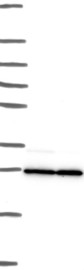 A Western blot analysis is performed on a panel of human tissues and cell lines to evaluate antibody specificity. For antibodies with unreliable result a revalidation using an over-expression lysate is performed.