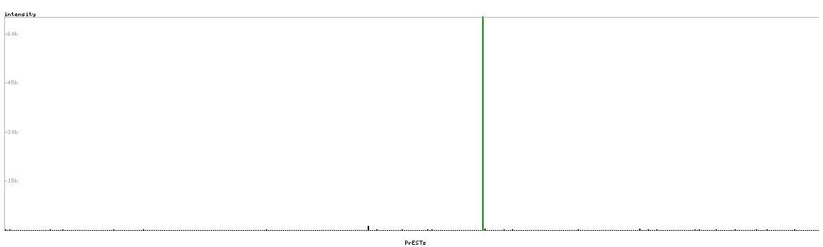 At the top of the view, the position of the antigen (identified by the corresponding HPA identifier) is shown as a green bar. A yellow triangle on the bar indicates a <100% sequence identity to the protein target.