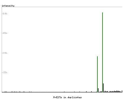 At the top of the view, the position of the antigen (identified by the corresponding HPA identifier) is shown as a green bar. A yellow triangle on the bar indicates a <100% sequence identity to the protein target.