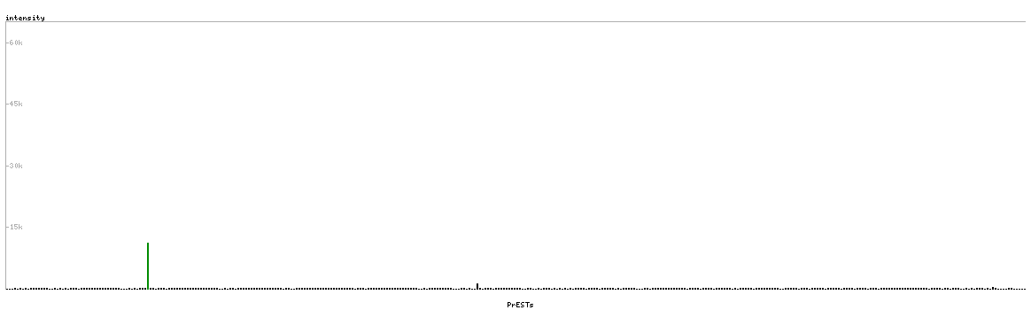 At the top of the view, the position of the antigen (identified by the corresponding HPA identifier) is shown as a green bar. A yellow triangle on the bar indicates a <100% sequence identity to the protein target.