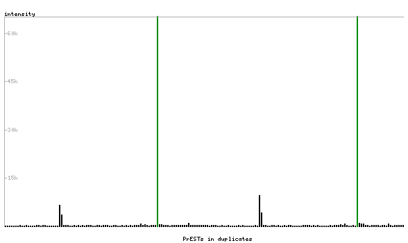 At the top of the view, the position of the antigen (identified by the corresponding HPA identifier) is shown as a green bar. A yellow triangle on the bar indicates a <100% sequence identity to the protein target.